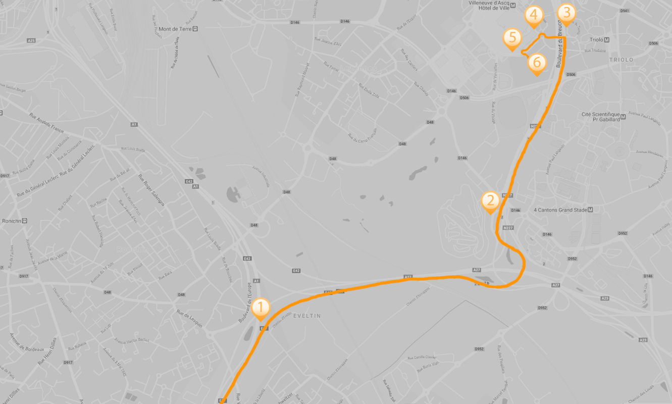 Suivre la direction de Villeneuve d'Ascq puis suivez le plan ci-dessous.