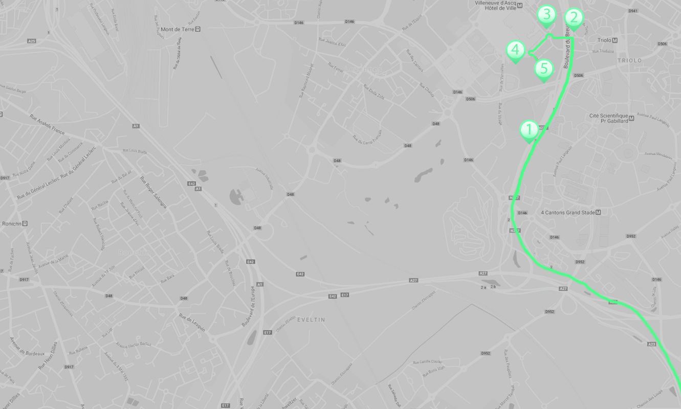 Suivre la direction de Villeneuve d'Ascq puis suivez le plan ci-dessous.