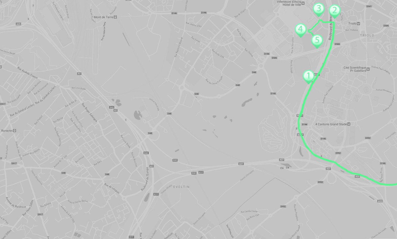 Suivre la direction de Villeneuve d'Ascq puis suivez le plan ci-dessous.